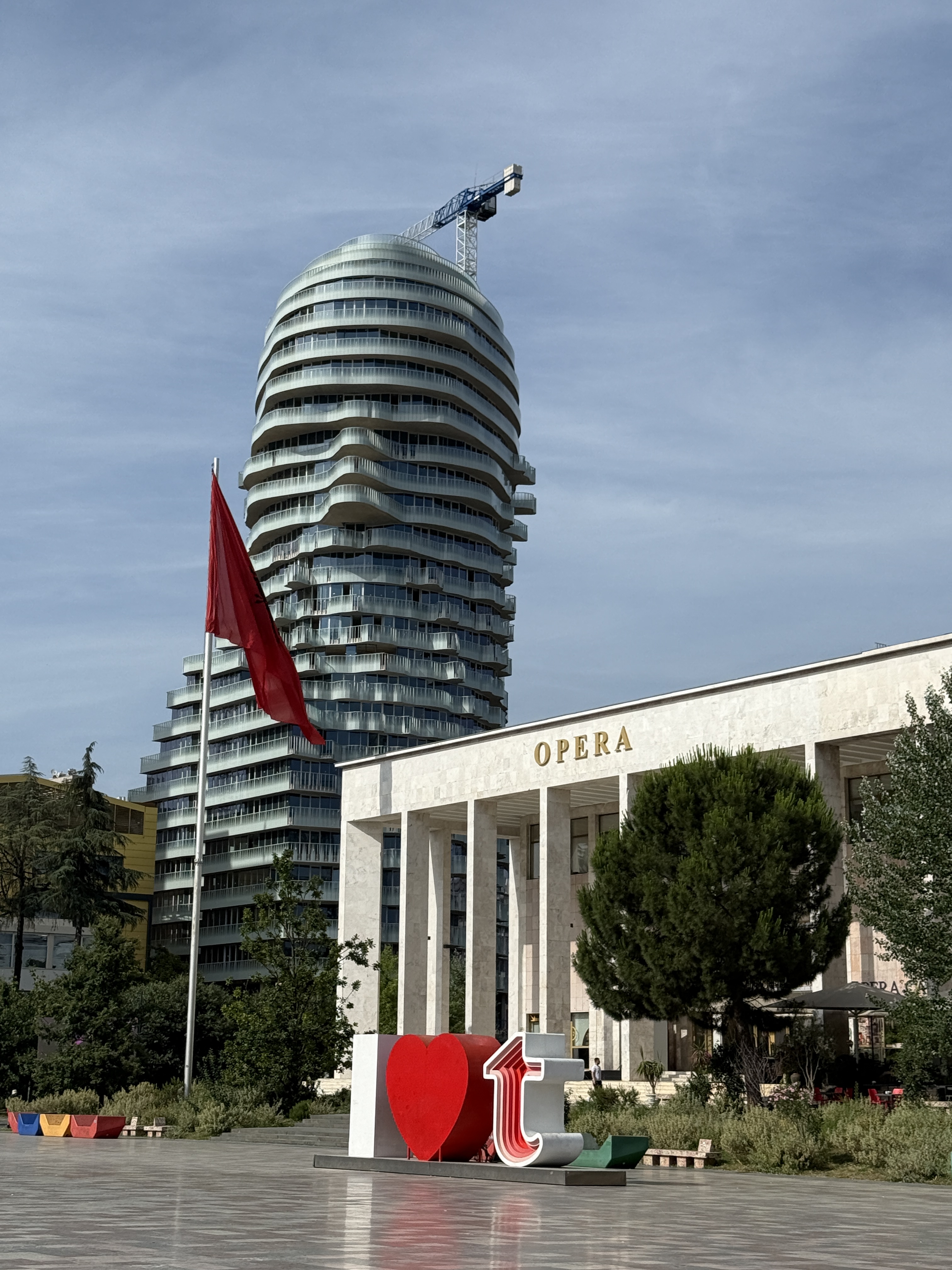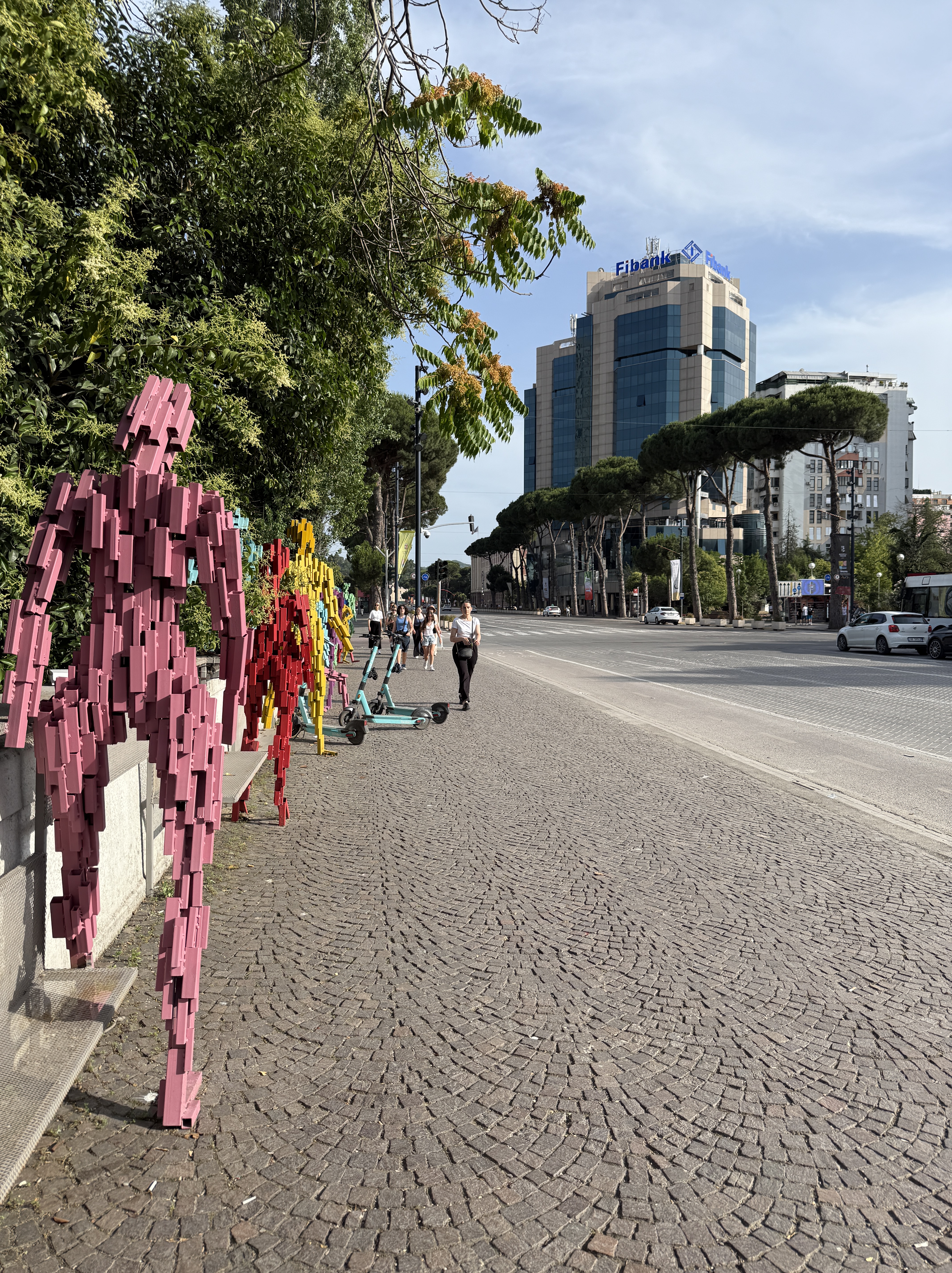 Hned po příletu do hlavního města Tirany nás na letišti přivítali písní a bylo nám jasné, že se nám tady bude líbit. Na letišti jsme si půjčili auto a zamířili rovnou do centra, na Skanderbegovo náměstí. Místo, kde rychle pochopíte, že tady se před sluncem utéct nedá, stín si tu hraje na schovávanou, všechno kolem je rozpálené a obklopené architektonickým freestylem.
